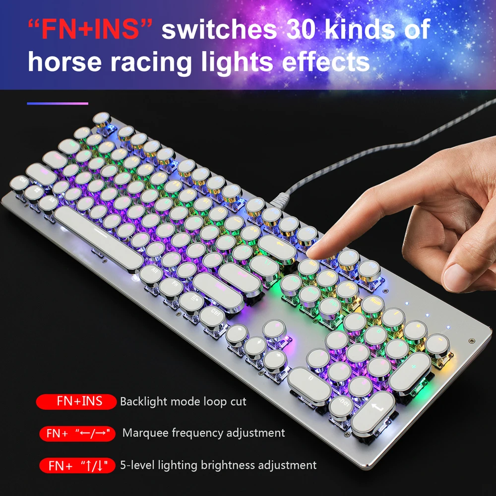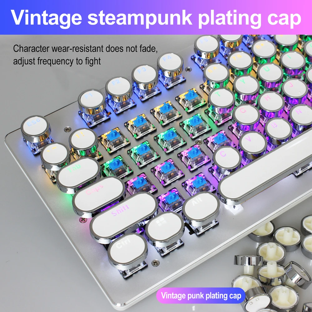 High-End Mechanical Gaming Keyboard RGB Backlight Blue Shaft Metal Panel Keyboards 104 Keys Punk Keycap USB Wired Game Keyboard
