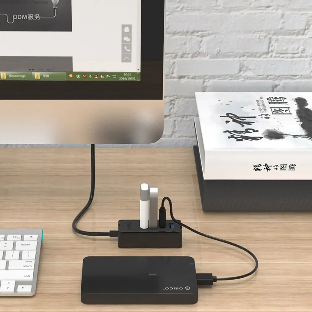 | ORICO 4 Port USB3.0 Desktop HUB Support OTG Function Attach Design USB3.0 HUB Reserved MicroB Power Supply Port-B |