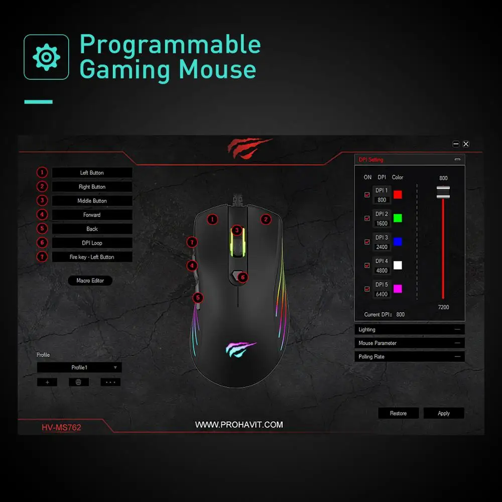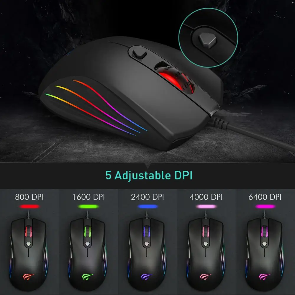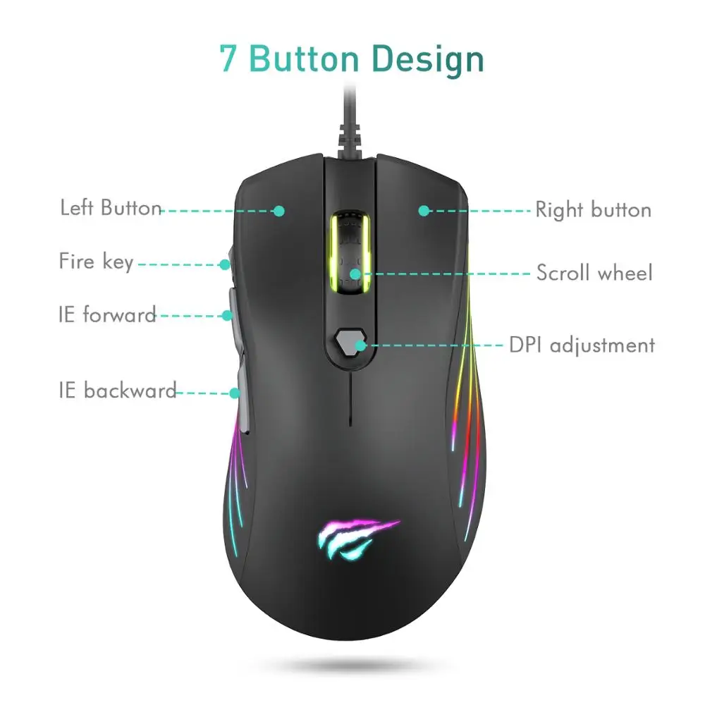 | HAVIT Gaming Mouse 7200DPI Programmable 7 Buttons RGB Backlit USB Wired Optical Mouse Chip-PMW3212 Gamer for PC Computer Laptop |