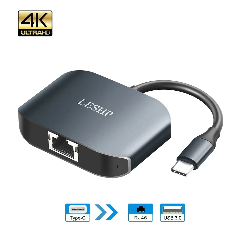 Type C USB-C to Gigabit Ethernet & USB 3.0 HUB Convertor Cable Adapter RJ45 101001000 Mbps LAN Network Port Type-C Device