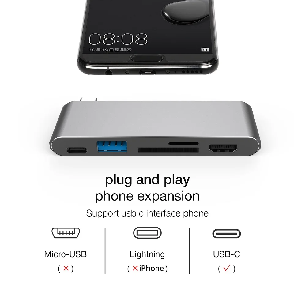 | YUNCLOUD USB Hub Type-C 3.1 with Type C Charing USB 3.0 SD TF Card Slot HDMI 4K Thunderbolt 3 Combo Dock Dongle For MacBook Pro |