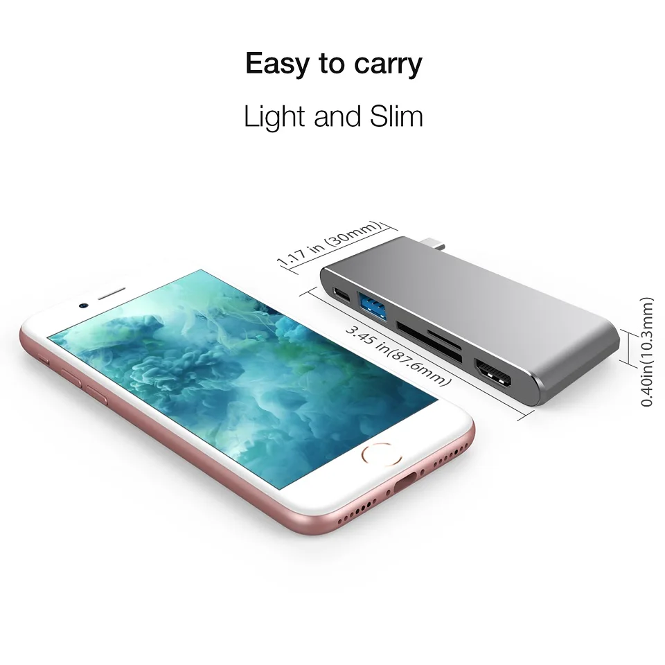 YUNCLOUD USB Hub Type-C 3.1 with Type C Charing USB 3.0 SD TF Card Slot HDMI 4K Thunderbolt 3 Combo Dock Dongle For MacBook Pro