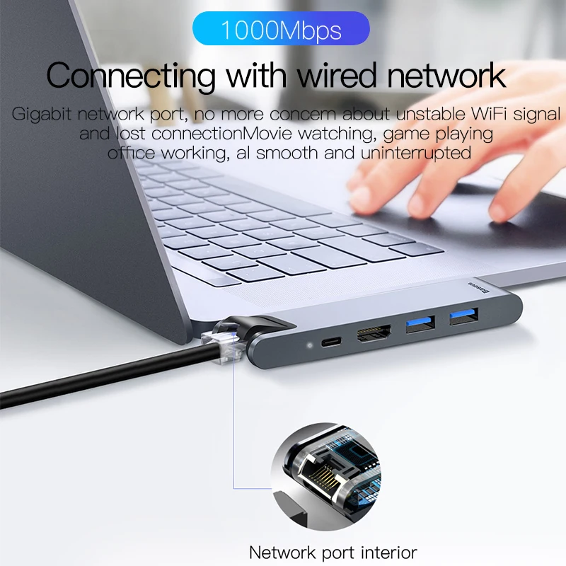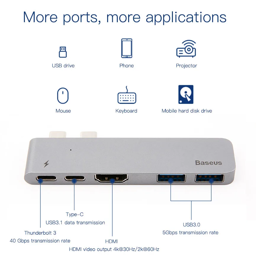 | Baseus USB Type C HUB C To HDMI RJ45 Ethernet Multi USB 3.0 Thunderbolt 3 Power Adapter For MacBook Pro Air USB-C Dock Splitter |