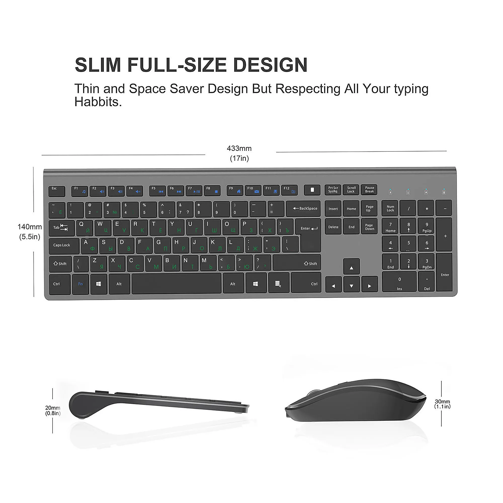| Russian Wireless Standard 106 Keys Keyboard Mouse Set Rechargeable Keyboard And Mouse Silent Mouse Slim Ergonomics for Laptop PC |