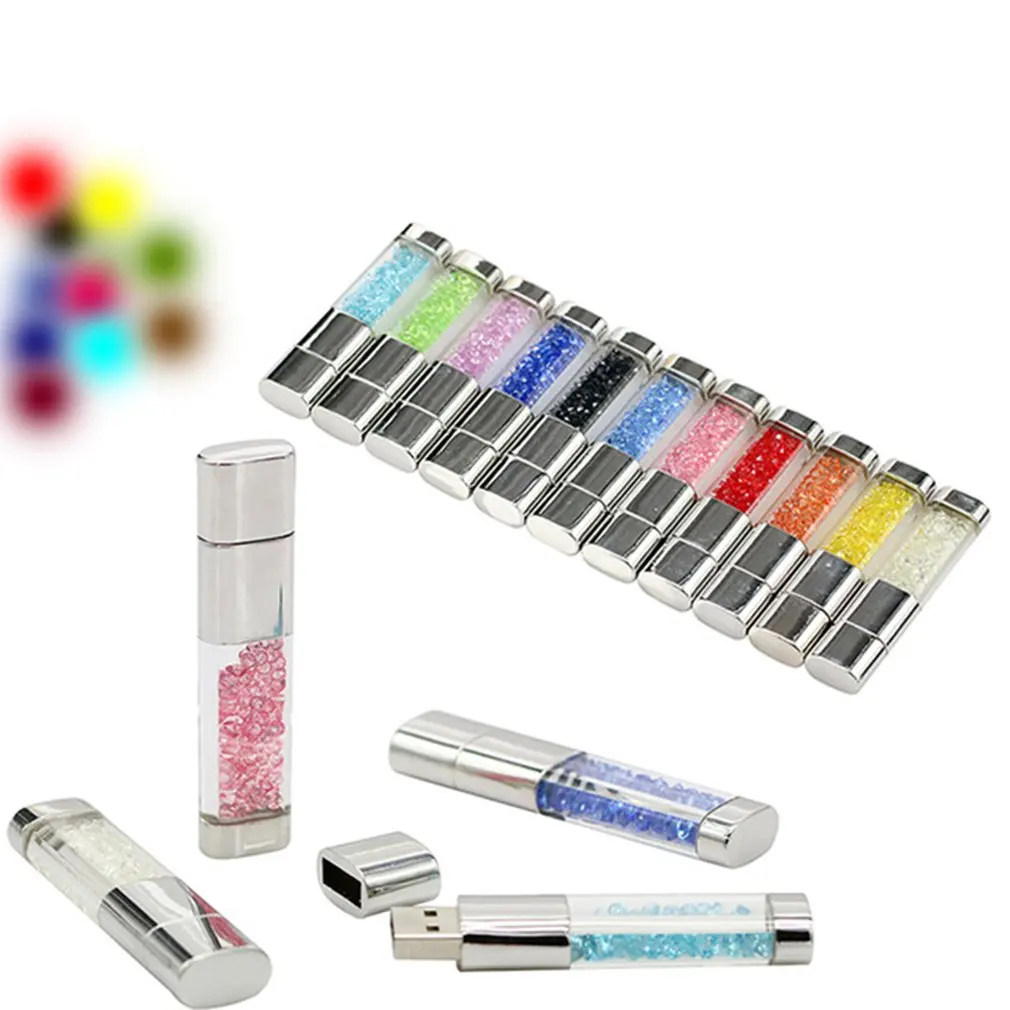 | PINK PURPLE Portable Mini Pen Drive Natural Diamond Rectangle USB Flash Drive 8GB 16GB 32GB 64GB Crystal Flash Disk Memory Stick |